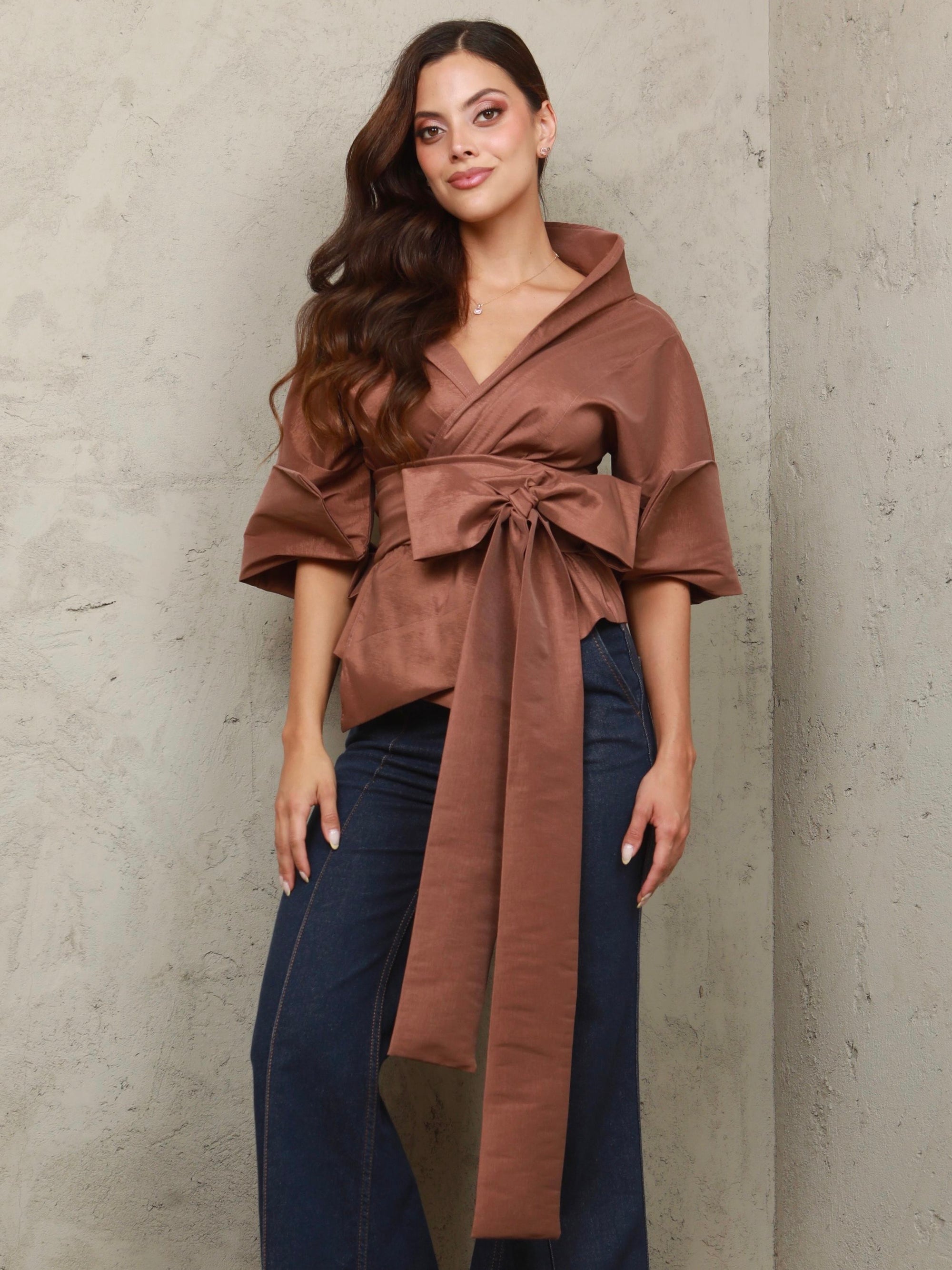 Camila Wrap Mocha Top
