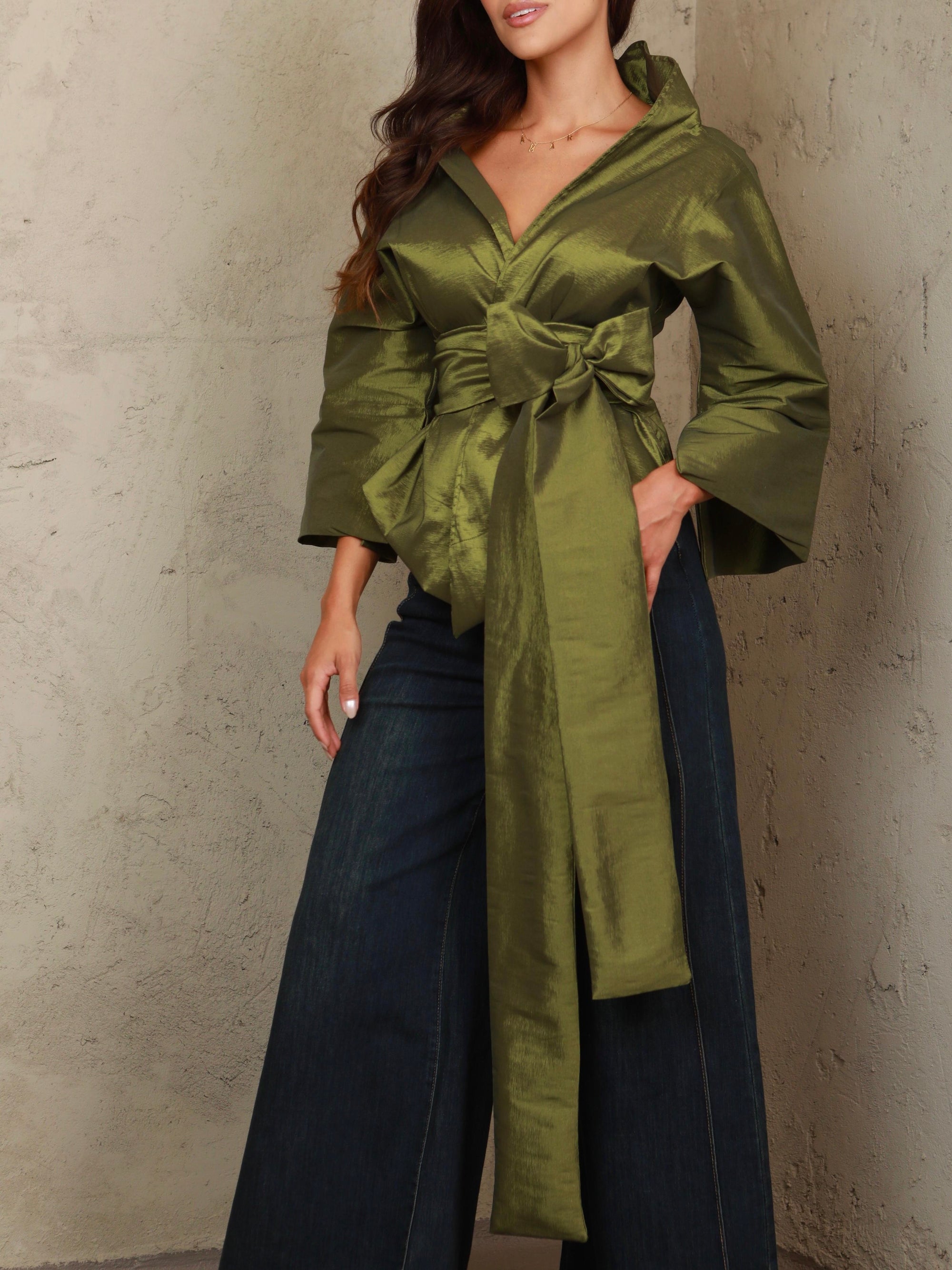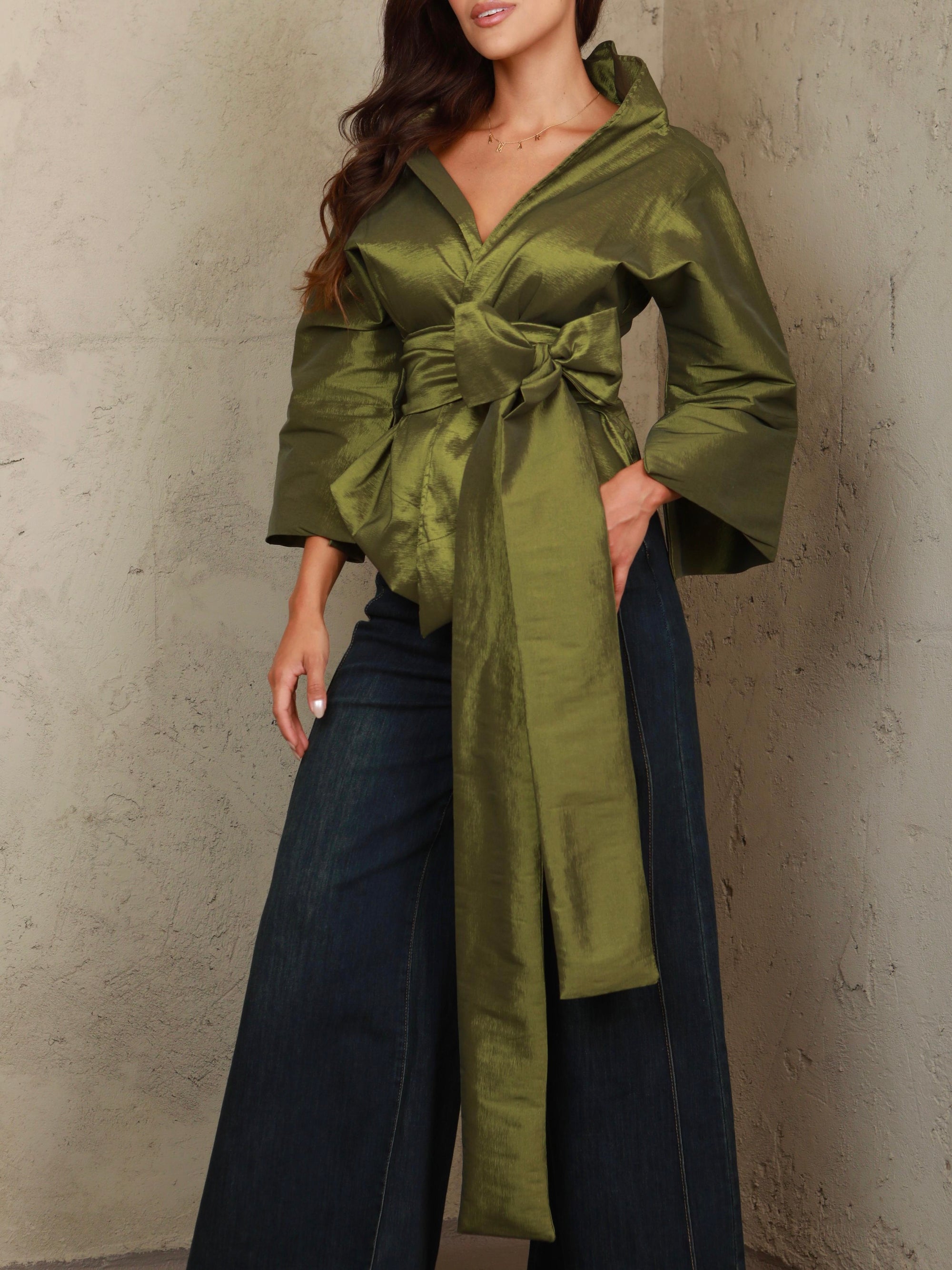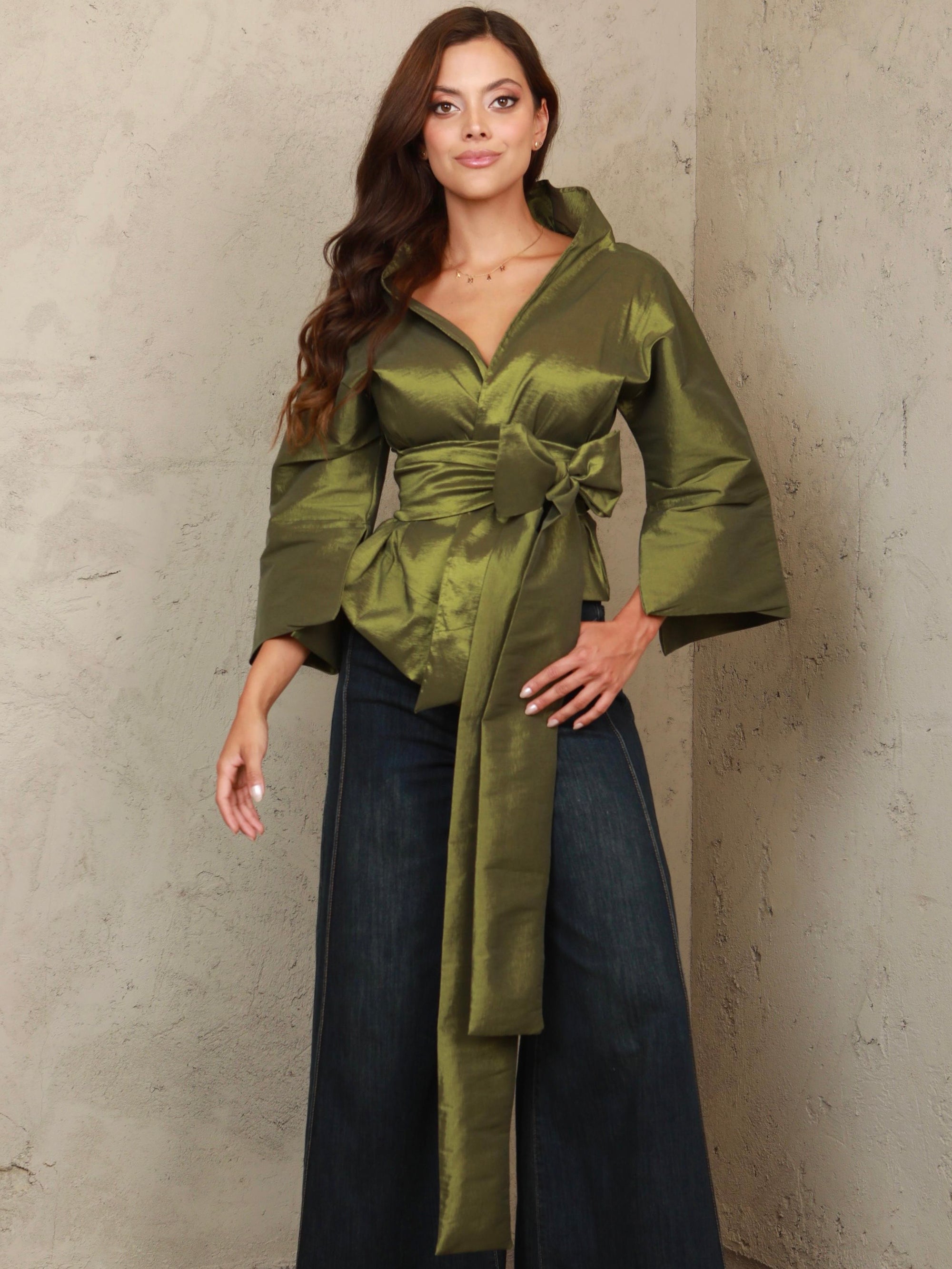 Camila Wrap Olive Green Top