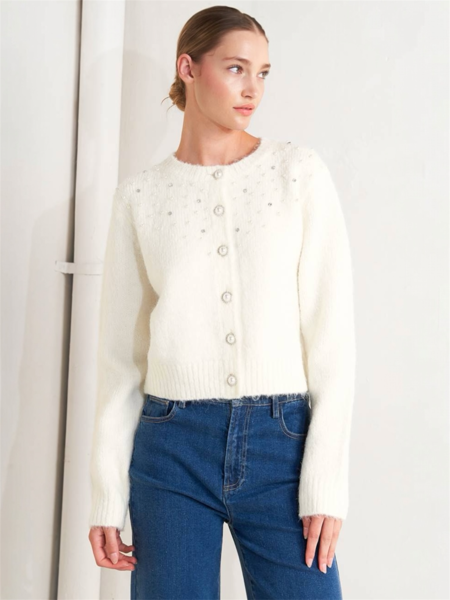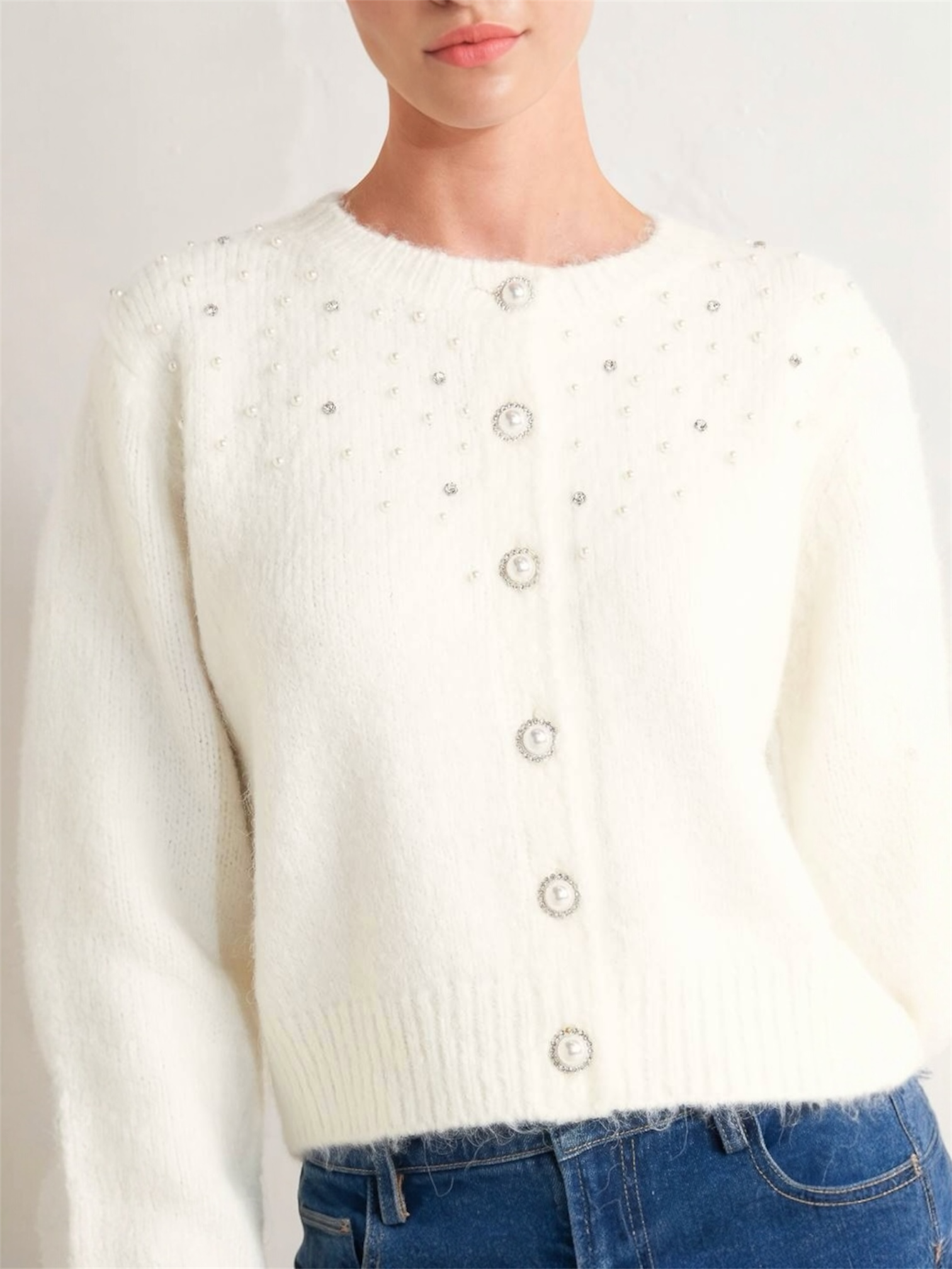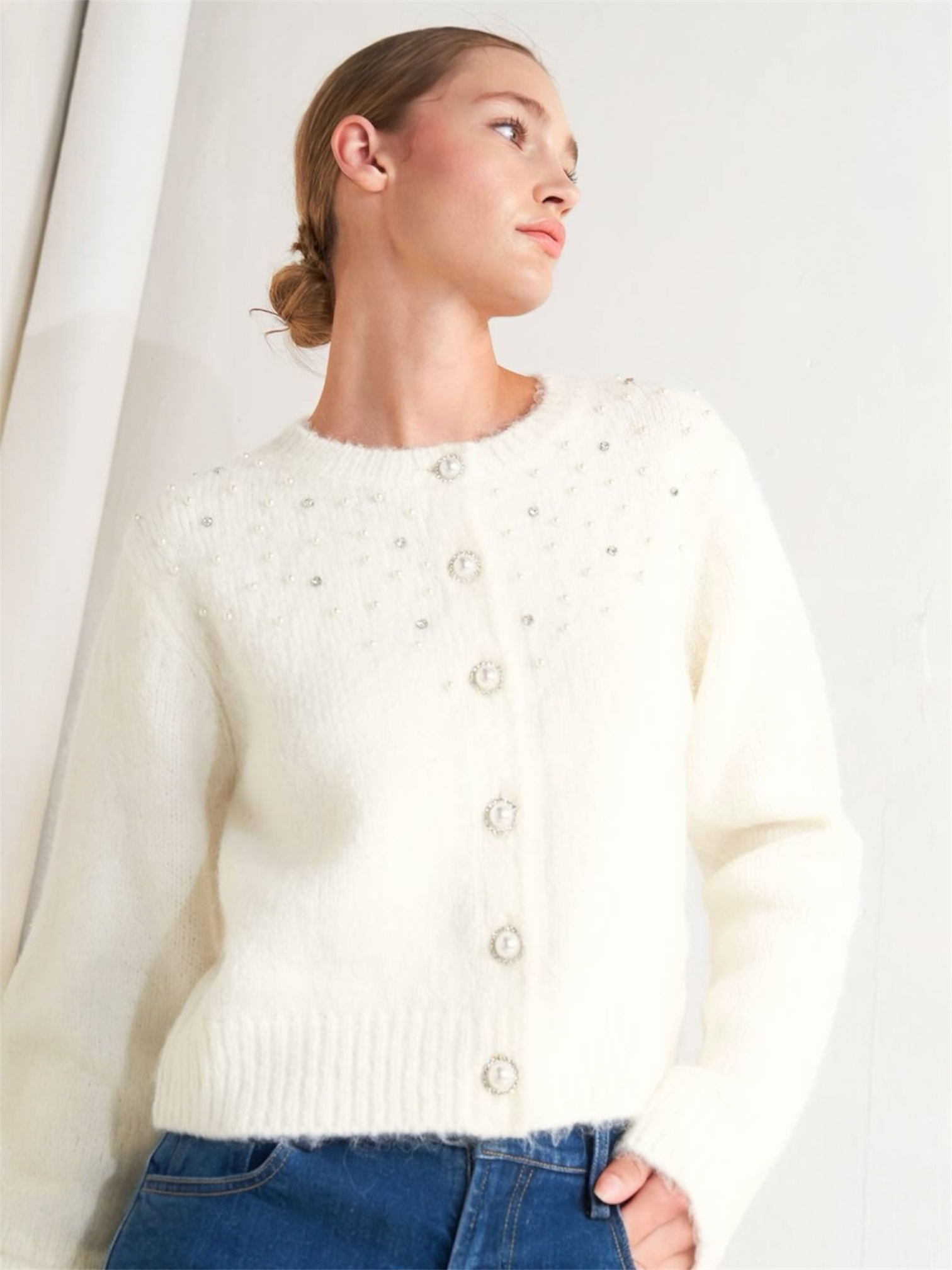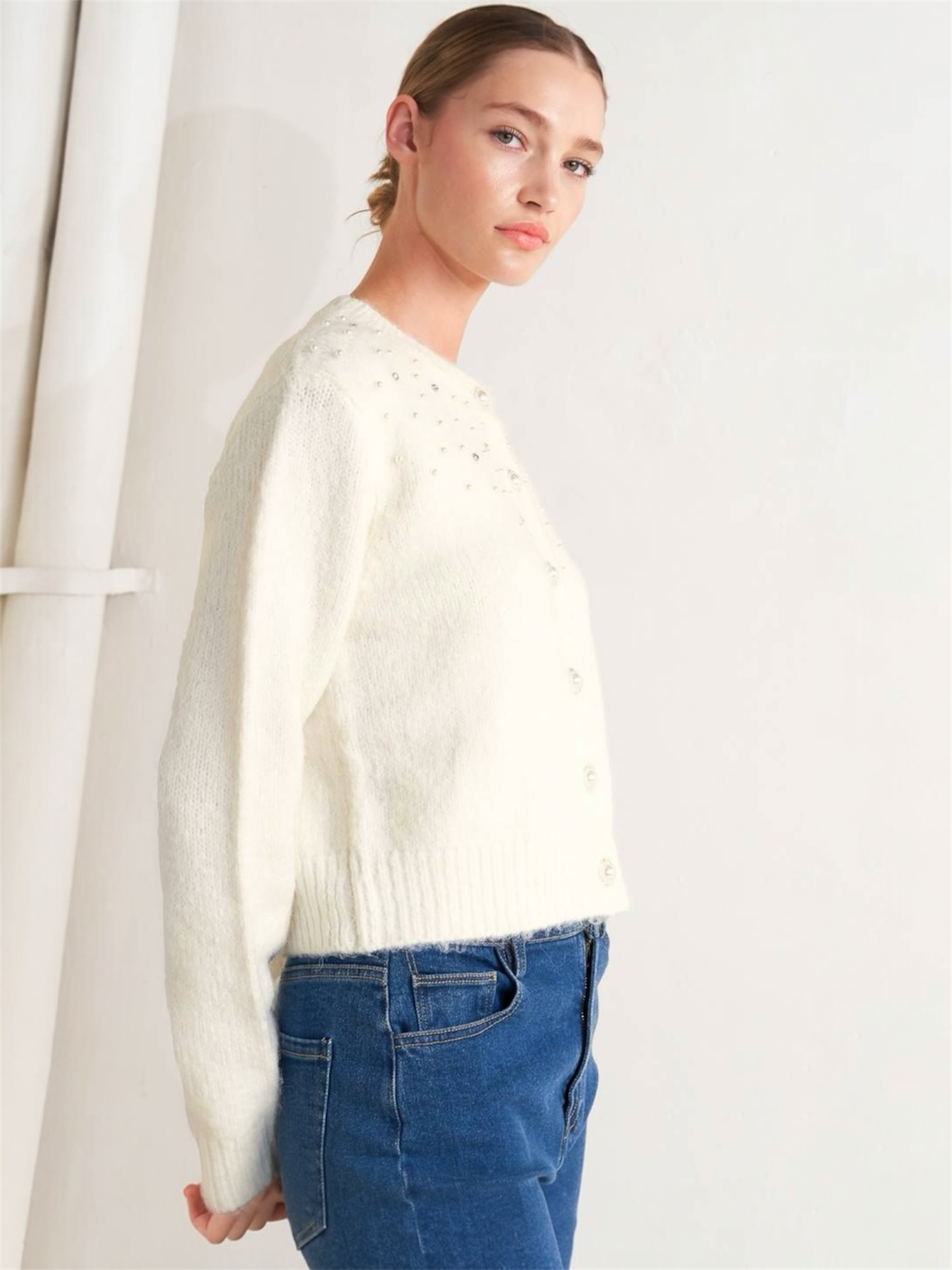 Ally Rhinestone Sweater Cream Top