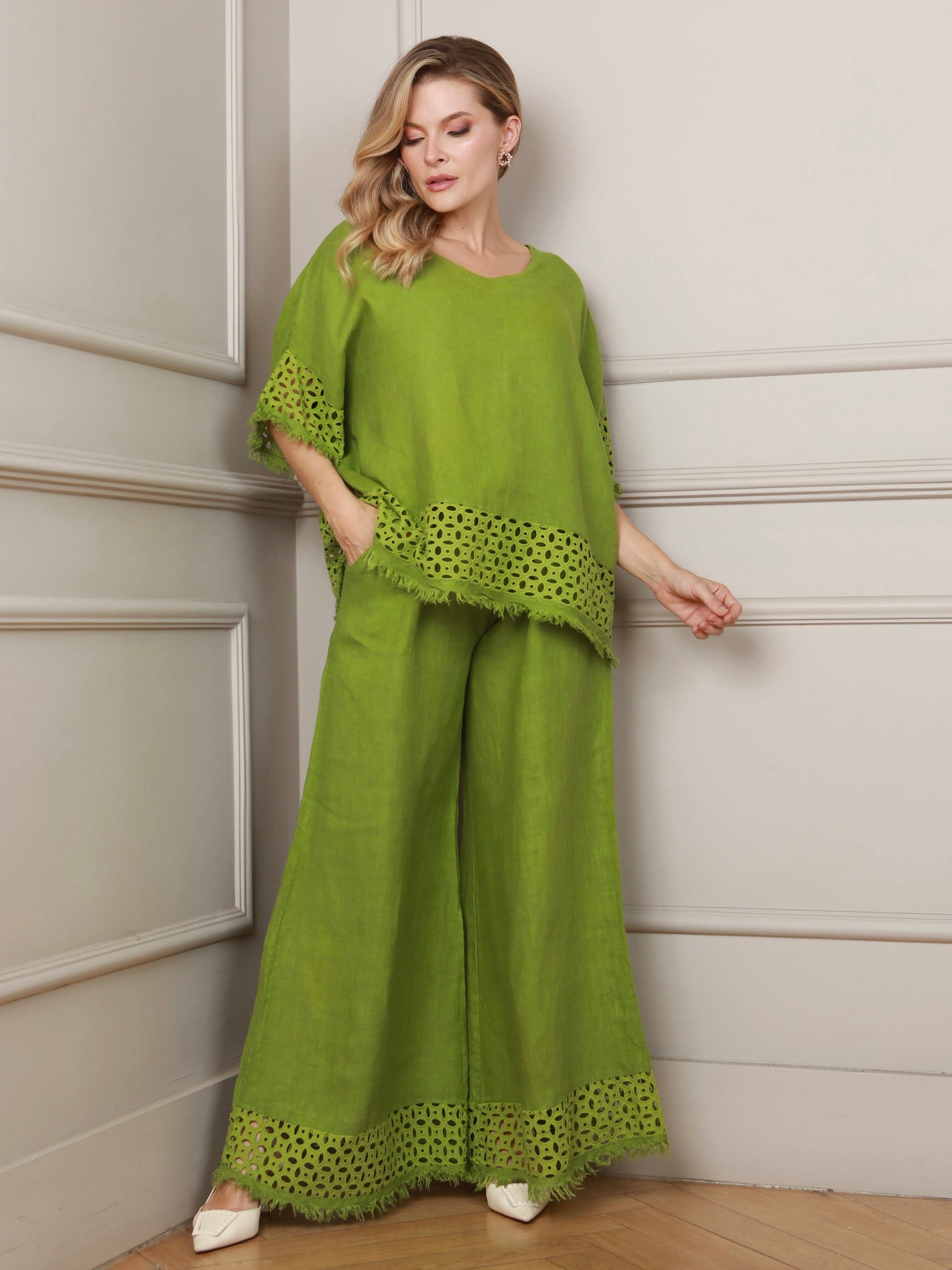 Marcella 2 Piece Linen Olive Green Set