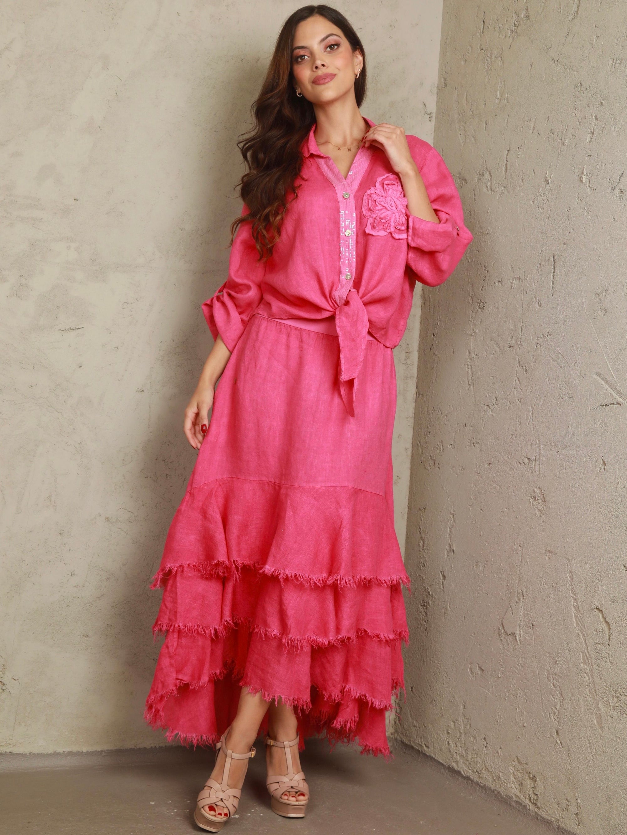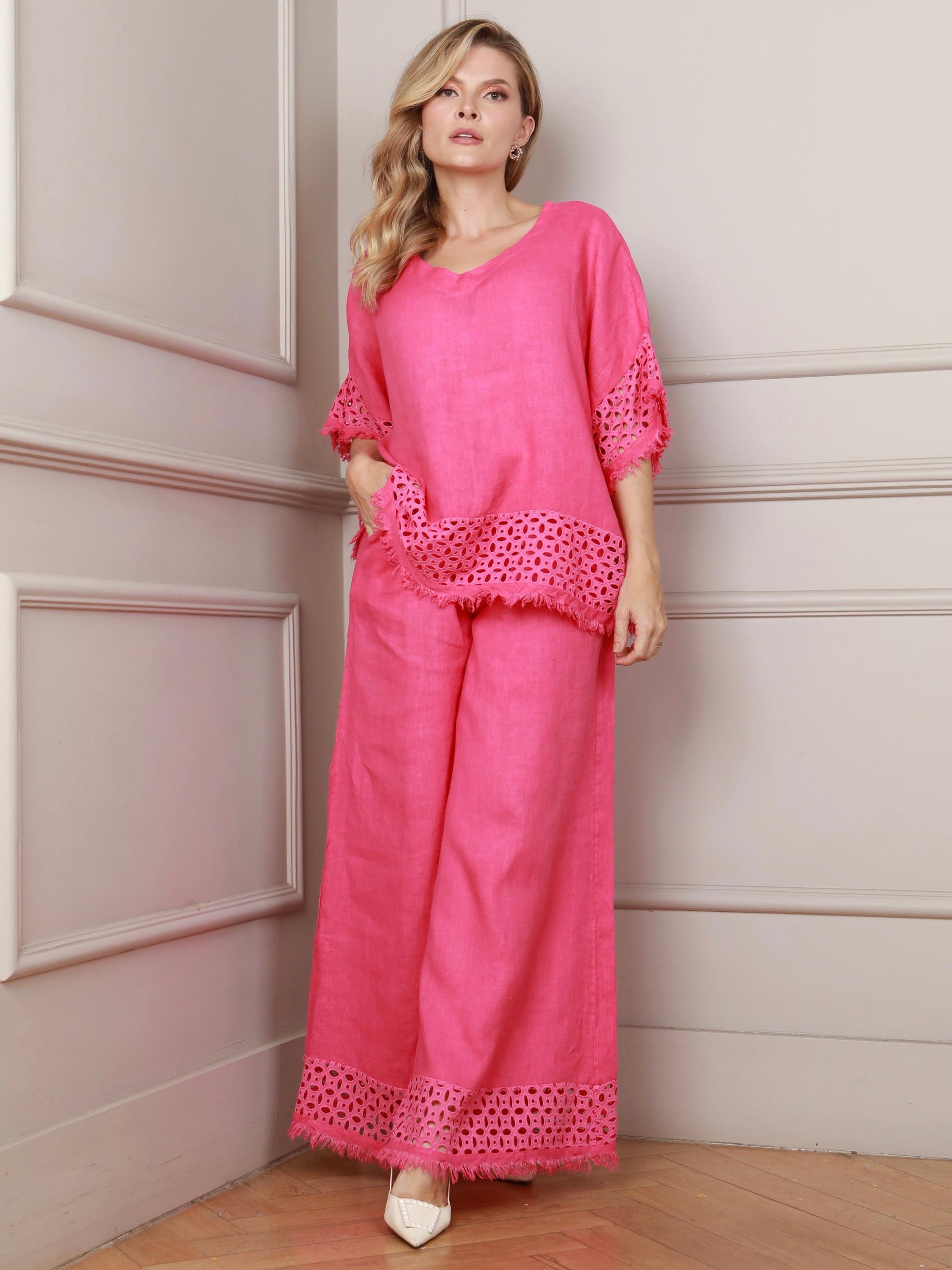 Marcella 2 Piece Linen Fucsia Set