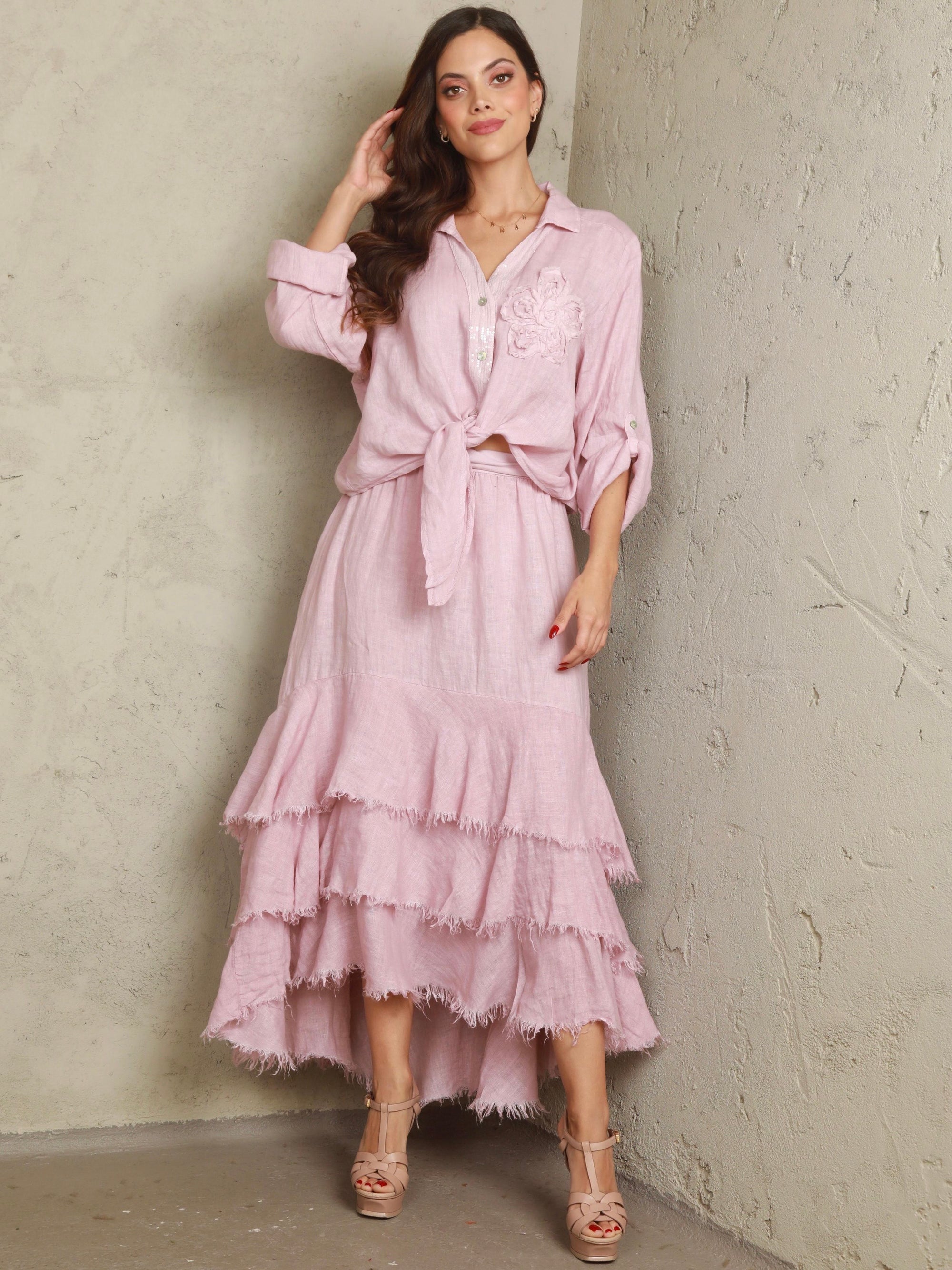 Giselle 2 Piece Linen Light Pink Set