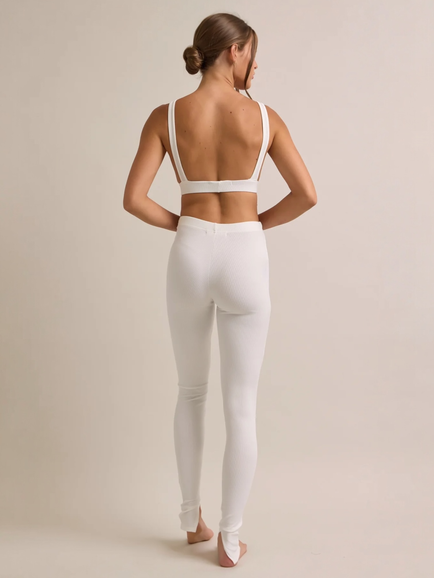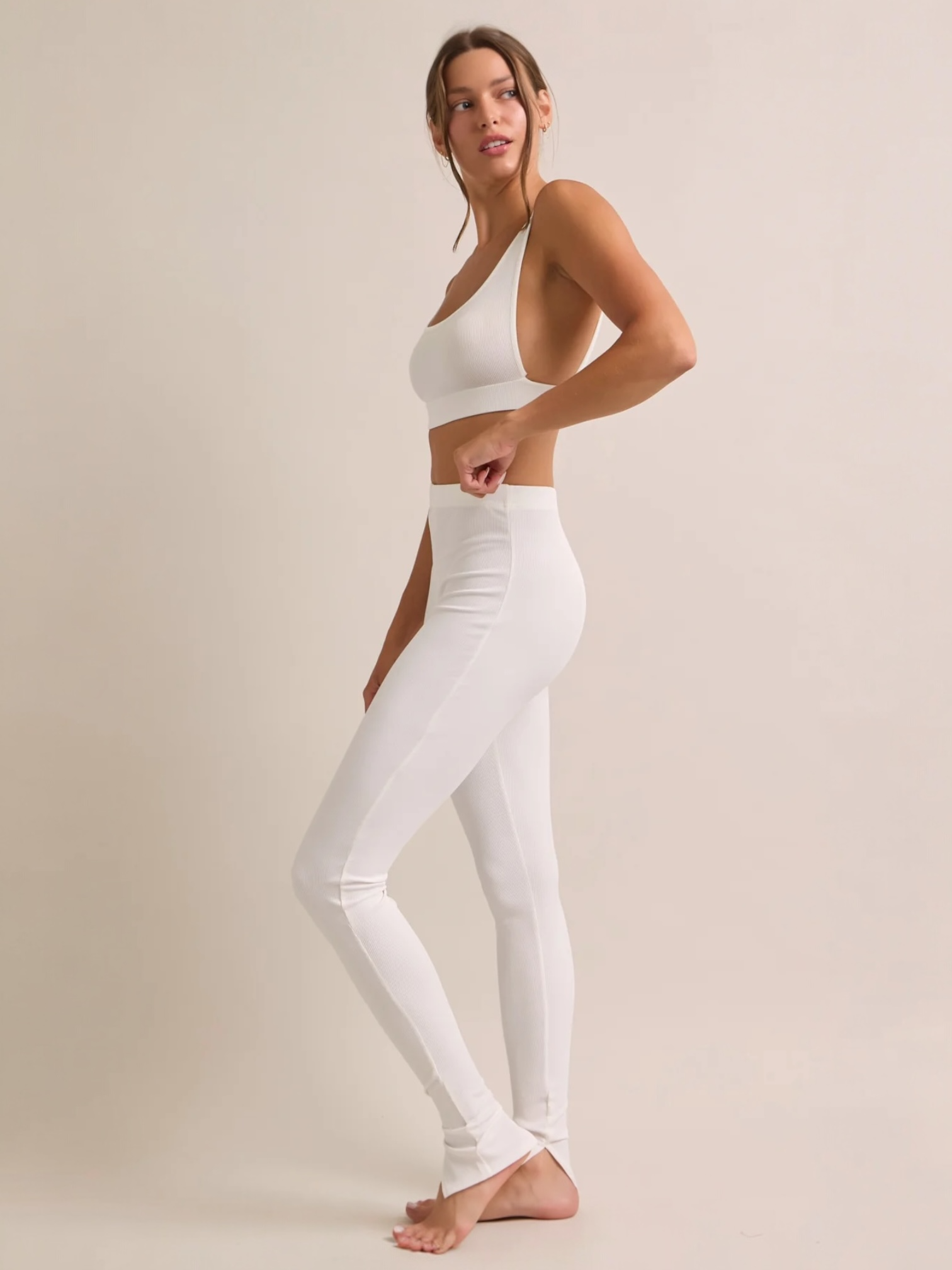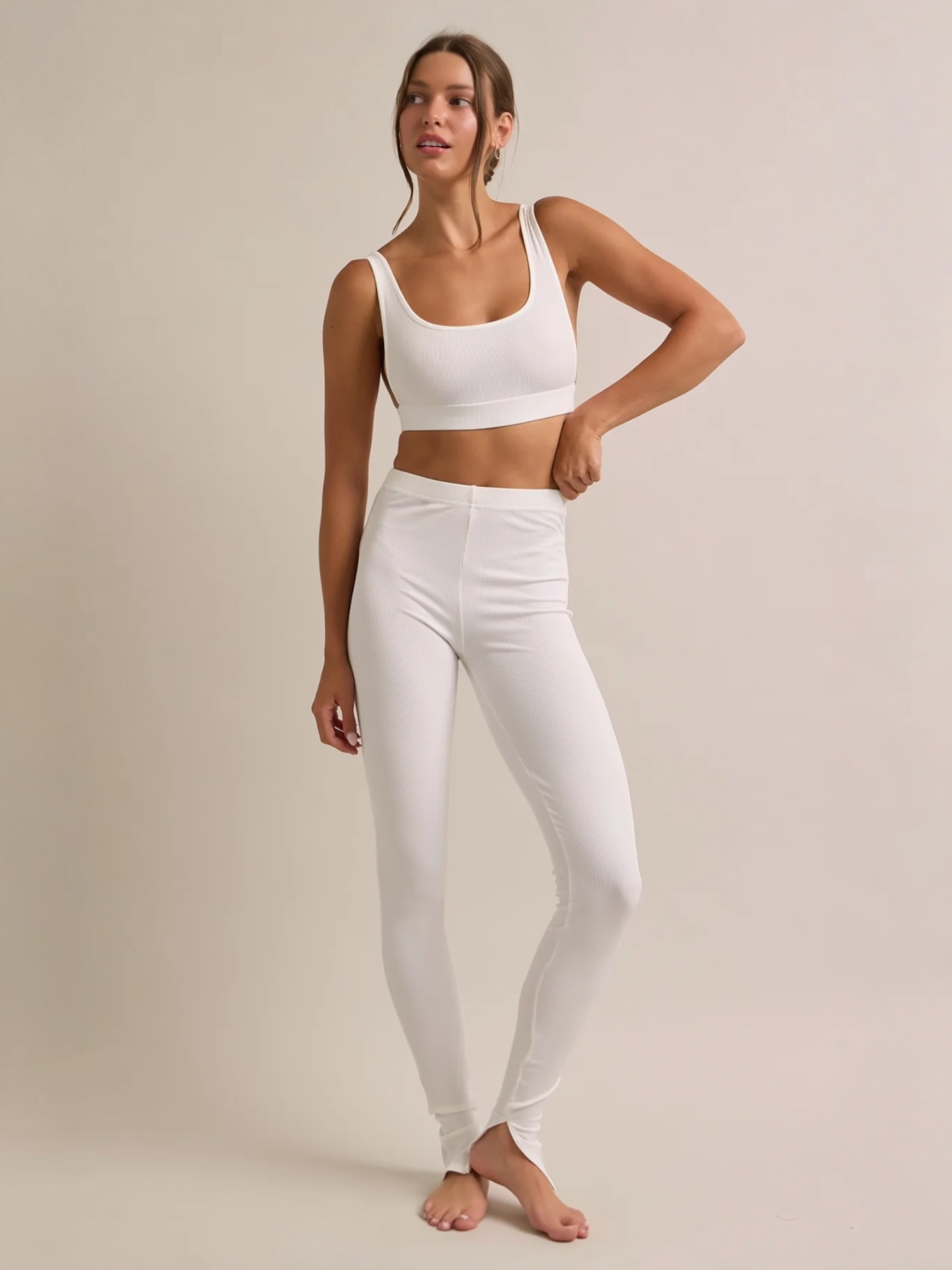 Tank Top and Pants W Slit Bottom Hem White